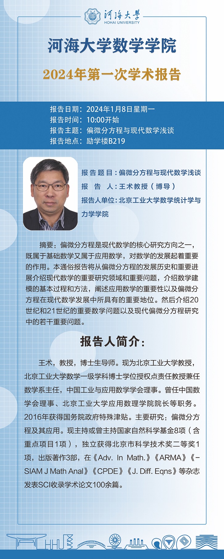 品凤楼 2024年第1次学术报告: 偏微分方程与现代数学浅谈