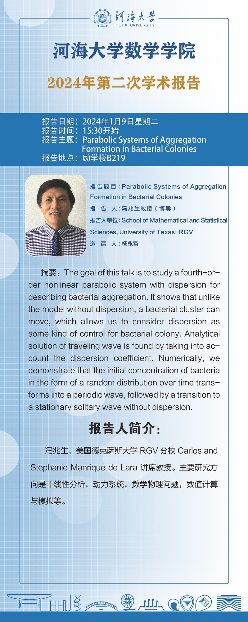 品凤楼 2024年第2次学术报告:Parabolic Systems of Aggregation Formation in Bacterial Colonies