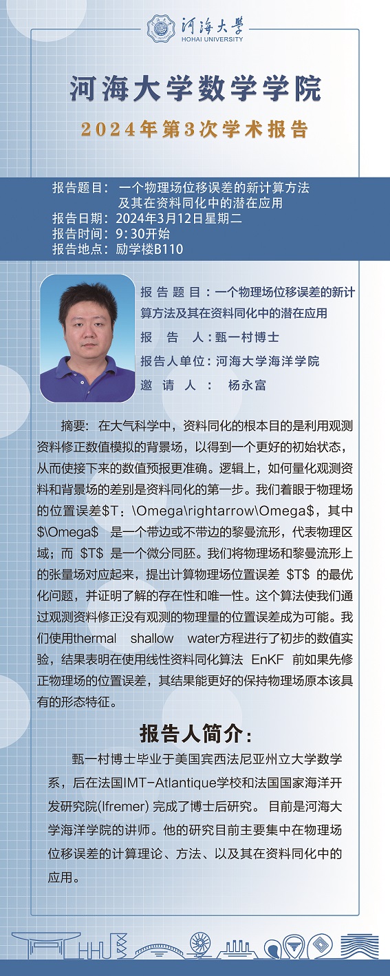 品凤楼 2024年第3次学术报告: 一个物理场位移误差的新计算方法 及其在资料同化中的潜在应用
