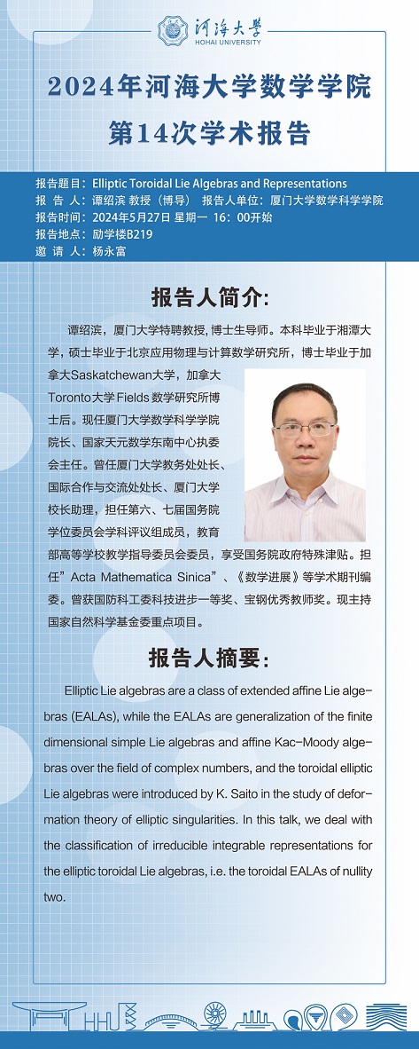 品凤楼 第14次学术报告:Elliptic Toroidal Lie Algebras and Representations
