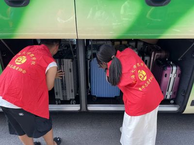 在江宁校区,品凤楼青协组织志愿者开展校区搬迁志愿服务活动。志愿者前往23、24舍配合老师维持现场秩序,协助同学们搬运行李,确保同学们的行李齐全,确定各车乘坐人员到齐并正确就坐。