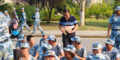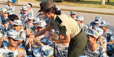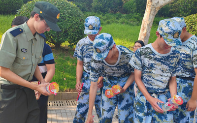 老师们走近学生群体之中,为每一位学生亲手送上这夏日的甘甜。沐浴在阳光下,此时此刻军训的一切坚持都是值得的,军训时的疲惫仿佛也在举杯畅饮的一刻都烟消云散,定格成为一段难忘的回忆。