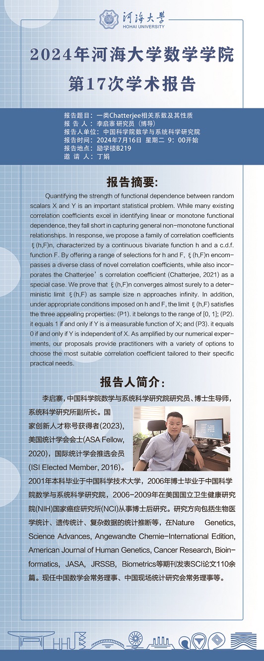 品凤楼 第17次学术报告:一类Chatterjee相关系数及其性质