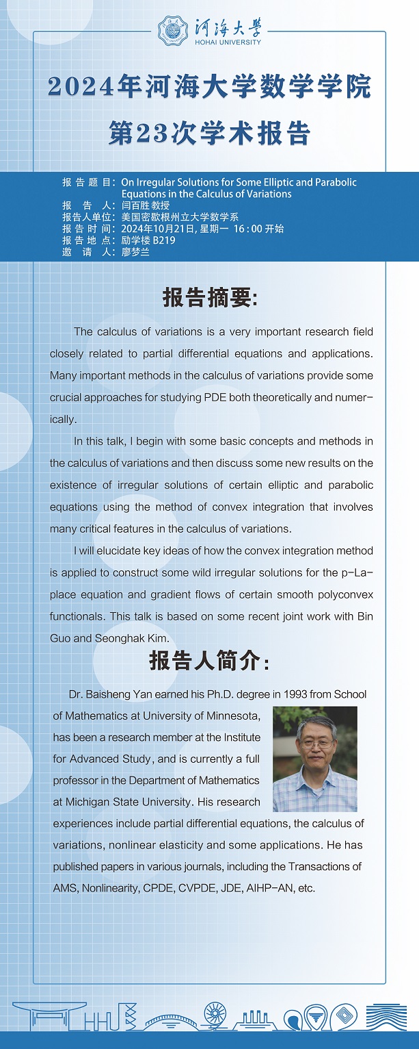 品凤楼 第23次学术报告:On Irregular Solutions for Some Elliptic and Parabolic Equations in the Calculus of Variations