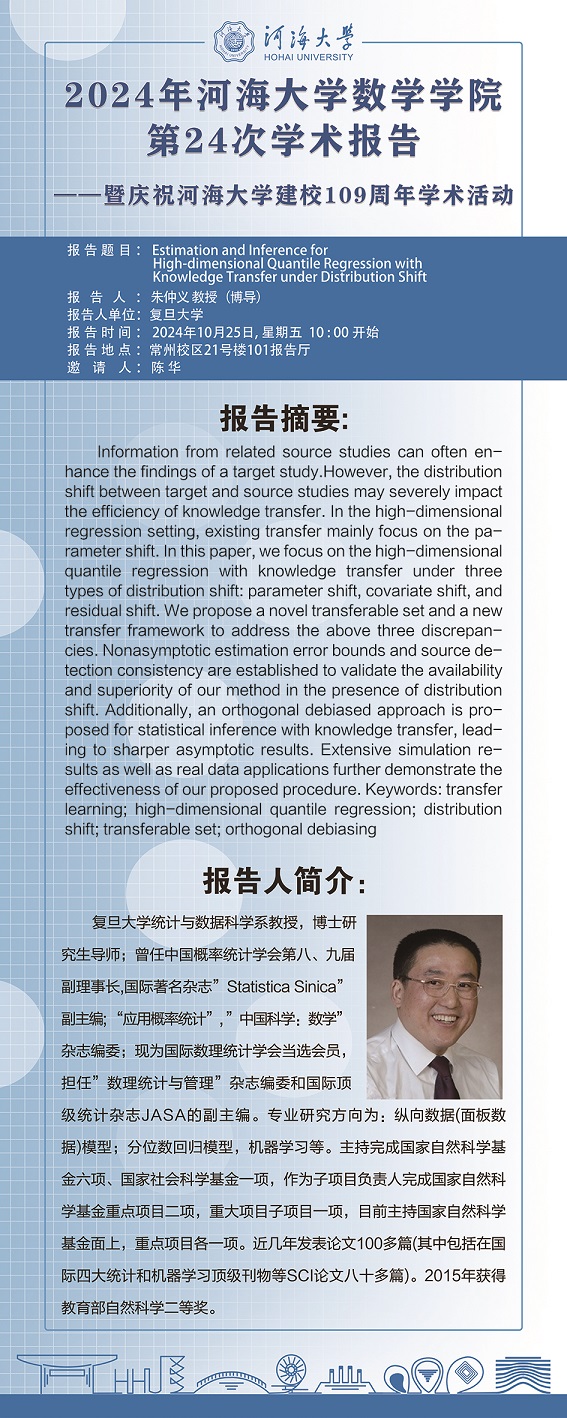品凤楼 第24次学术报告:Estimation and Inference for High-dimensional Quantile Regression with Knowledge Transfer under Distribution Shift
