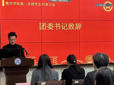 第二次研究生代表大会在国歌声中拉开序幕。首先,由品凤楼 团委书记张添烨老师发表致辞,张老师对过去一年研会的工作给予高度肯定,同时对学生组织工作提出三点希望:一是认真学习领会习近平总书记关于青年工作的重要思想;二是加强学习能力,培养创新意识,提升自身工作能力和本领;三是树立远大理想,坚定信念,执着向前。