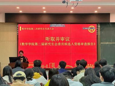 随后,大会听取了院研究生会主席团成员夏世源所作的《品凤楼 第二次研究生代表大会筹备工作报告》。报告阐述了筹备委员会的工作、研究生代表产生办法以及第二届研究生会委员候选人条件。