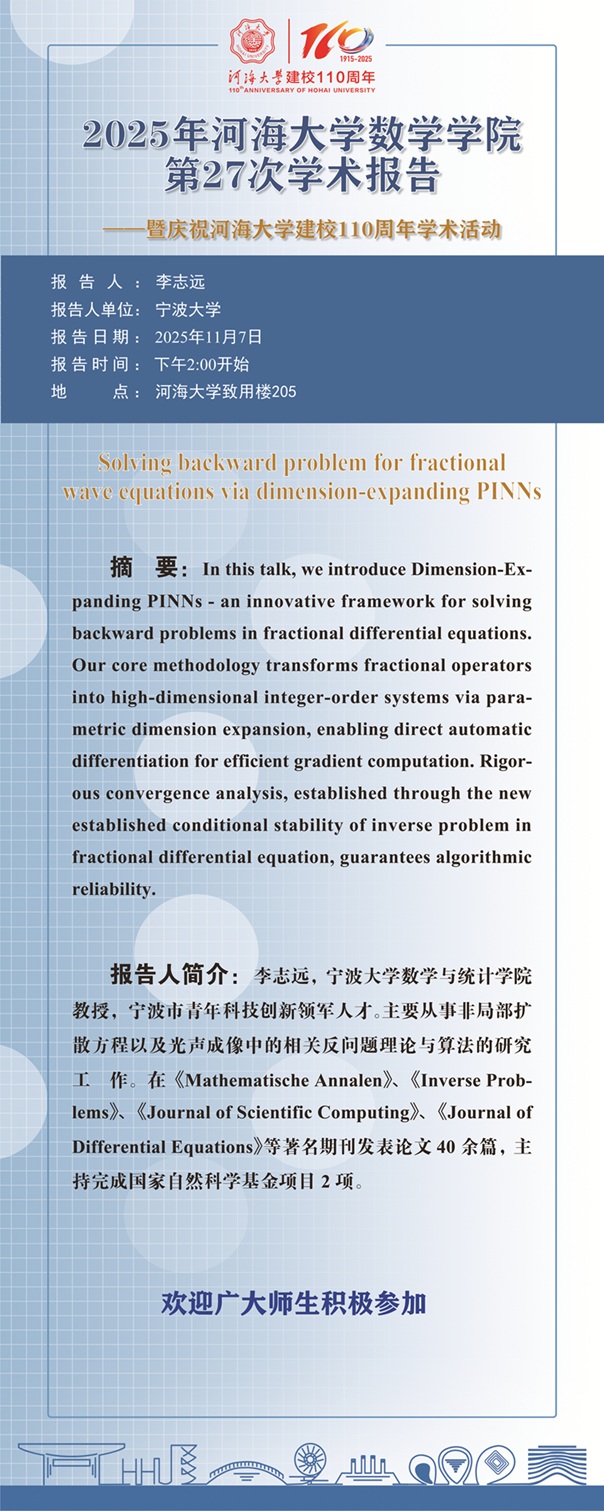 品凤楼 第27次学术报告:Solving backward problem for fractional wave equations via dimension-expanding PINNs