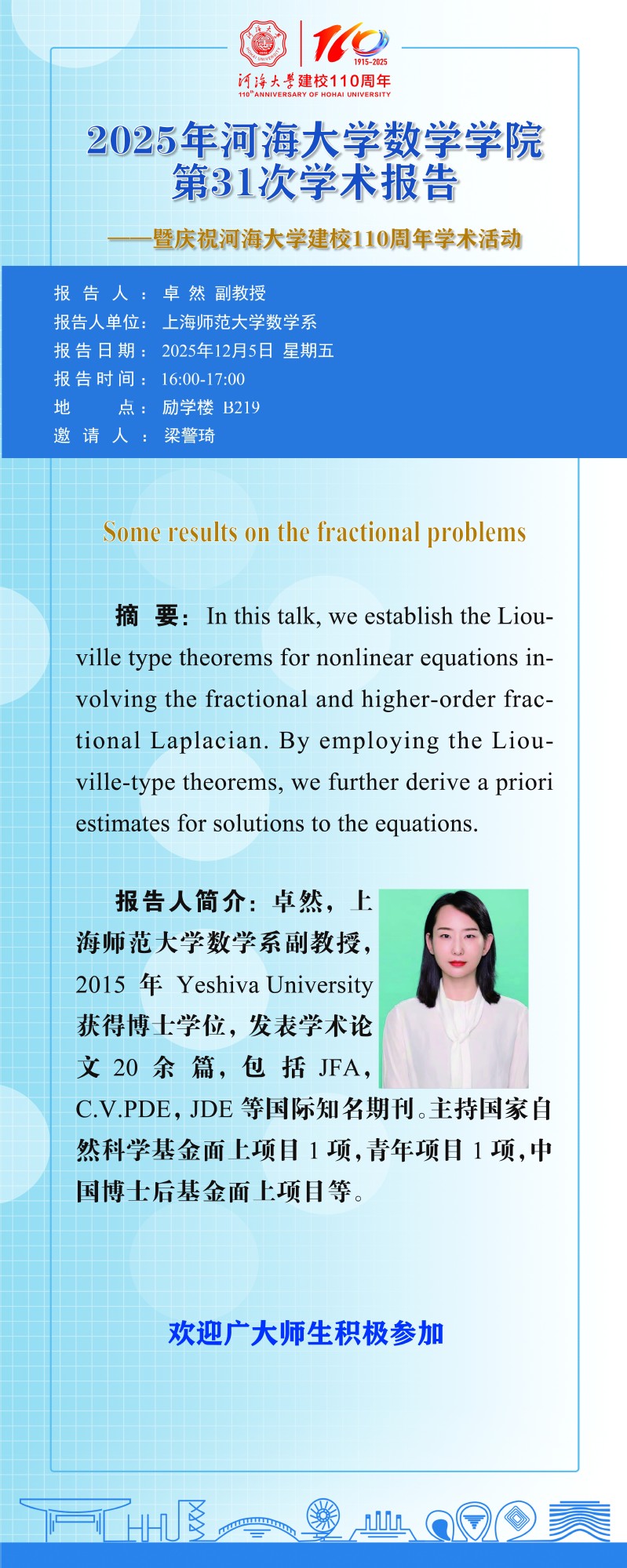 品凤楼 第31次学术报告:Some results on the fractional problems