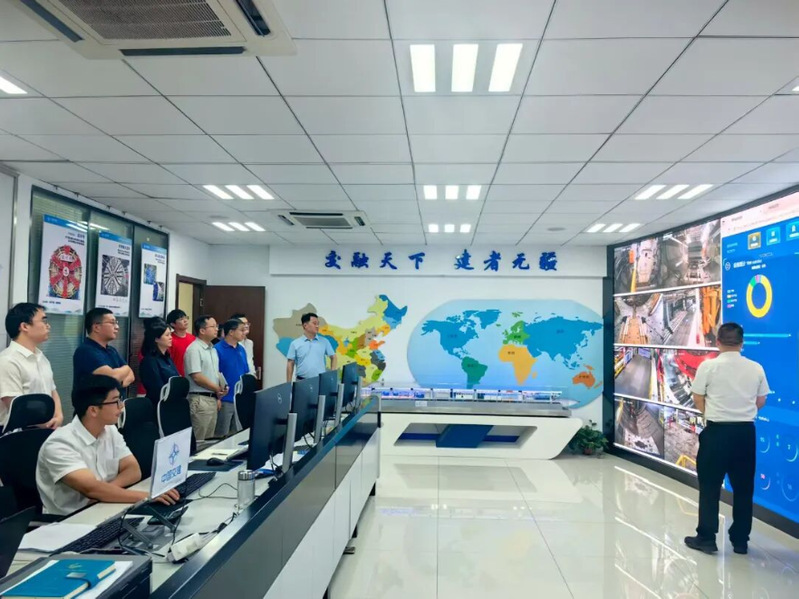 团队走进中国交通建设集团盾构施工安全监控中心,了解其在重大工程施工中的数字化安全保障机制。这一中心作为盾构施工数据集成与预警平台,全天候对国内外在建盾构项目进行安全监测与风险分析。中心通过实时采集盾构机的推进力、扭矩、倾角等参数,利用高性能计算与大数据分析对施工状态进行动态监控和风险预测。在可视化监控平台上,博士团成员看到海量施工数据与模拟结果实时更新,形成了从数据采集到风险预警的全流程智能闭环。调研过程中,博士生们听取了专家关于“数字孪生盾构施工”的讲解,团队成员还就多源数据融合、云计算和网络安全等问题与企业技术人员展开讨论,通过实地观摩和交流,加深了对数字化盾构技术体系的理解,明确了数学知识在安全监测、风险评估等方面的实践价值。