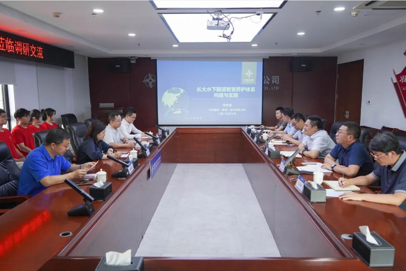 博士团第一站来到中交隧桥(南京)技术有限公司,并与公司有关领导及相关技术部门负责人开展调研座谈会。座谈会上,公司党委书记、董事长时小群详细介绍了公司作为以隧道及地下工程运营管理养护为核心的高新技术企业,依托“江河湖海”核心技术体系,长期肩负国家重大基础设施建设使命,在港珠澳大桥等世纪工程中彰显央企担当。他与博士团成员强调数学建模与算法在基础设施数字化中的重要性,“隧桥公司的数字化管理离不开数学建模的支持,通过自主研发与引进应用等方式用‘数学+’赋能智慧管养,提升检测与监测的智能化水平”。
