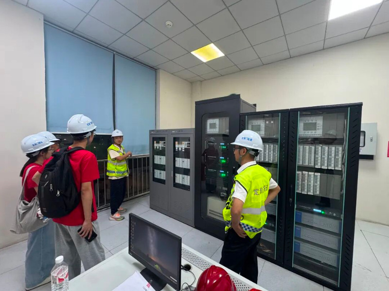 博士团也来到南京交通运营管理集团定淮门隧道调度处置中心,这是长江下穿隧道的重要智能化监控枢纽。中心通过交通感知、视频监控、环境检测等系统,实时掌握隧道运行态势和车流状况。调研期间,团队参观了控制台和指挥大屏,了解到该中心负责对隧道照明、通风、消防等系统进行统一调度。此外,博士团还前往了另一处隧道运行管理场所,重点参观了智慧供电系统,同样依托于定淮门长江隧道管养信息化系统,可对隧道供电网络进行全时段监控与分布式管理,实时采集电流、电压、温度等数据并进行动态调节。
