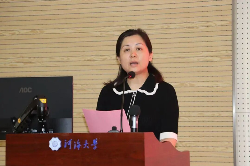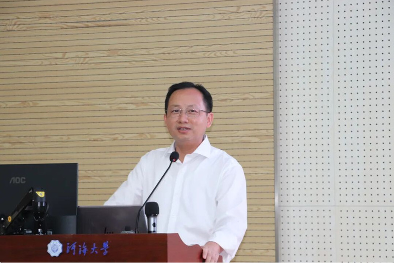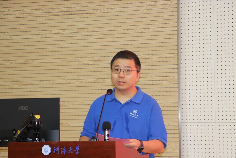 伴随着庄严的国歌,开学典礼正式开始。潘静书记以“奋斗为笔,书写数学人生”发表致辞,她代表学院全体师生对新生的到来表示热烈欢迎,并介绍了学院成立的背景与意义,随后以“解码数学之美”、“传承河海精神”、“绘就人生光谱”三个关键词,鼓励新生感悟数学语言的通用与逻辑之美,培养科研思维;传承学校使命,将个人理想融入国家发展大局;打破学科壁垒,在理工融合中成长为拔尖创新人才。最后,她以函数表达式寄语新生,期望他们在河海开启人生新篇,书写“大哉河海奔前程,毋负邦人期”的华章。