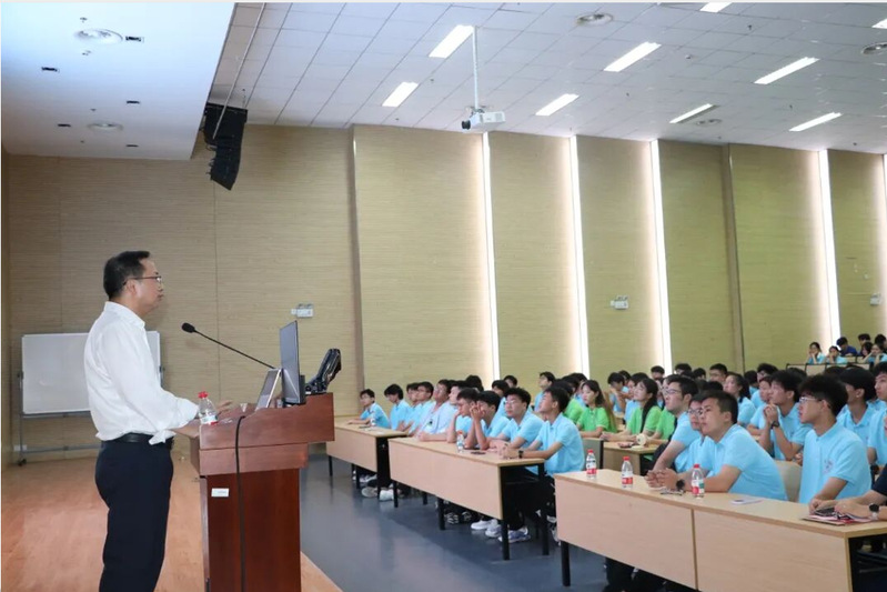 开学典礼第二阶段,杨院长为新生带来生动的“开学第一课”。他结合数学学科发展前沿与学院培养特色,从学术素养、科研思维、人生规划等方面为新生答疑解惑,引导他们在夯实数理基础的同时,主动探索学科交叉的无限可能,为未来投身国家科技自立自强事业筑牢根基。