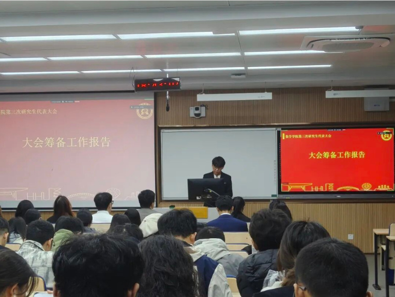 随后,大会听取了院实践部部长钟林洲所作的《品凤楼 第三次研究生代表大会筹备工作报告》。报告阐述了筹备委员会的工作、研究生代表产生办法以及第三届研究生会委员候选人条件。