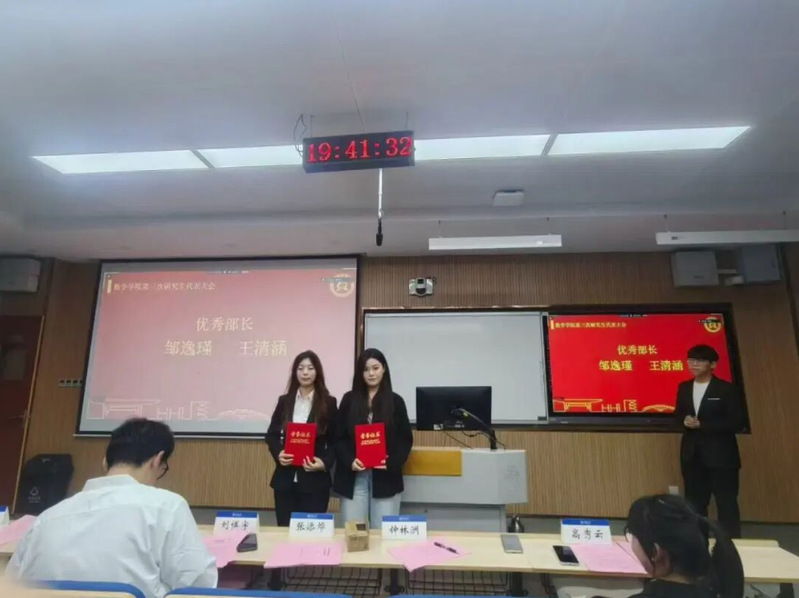 计票期间,大会对学院2024-2025年度研会优秀干部及干事进行表彰,希望他们谦虚谨慎,戒骄戒躁,再接再历,继续发挥模范带头作用。