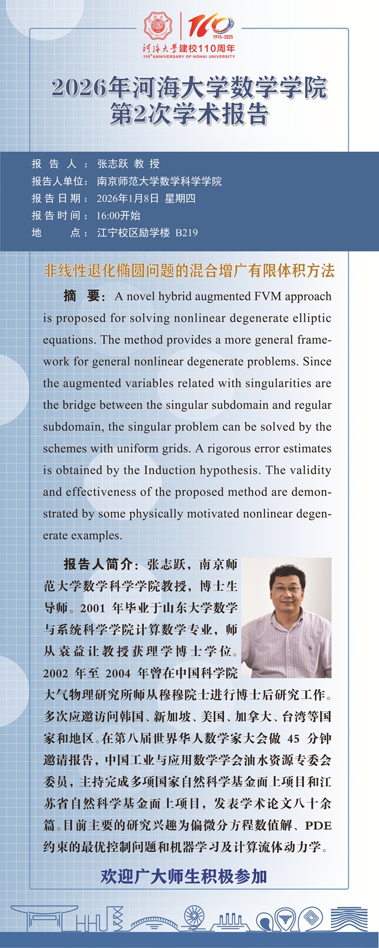 品凤楼 2026年第2次学术报告:非线性退化椭圆问题的混合增广有限体积方法