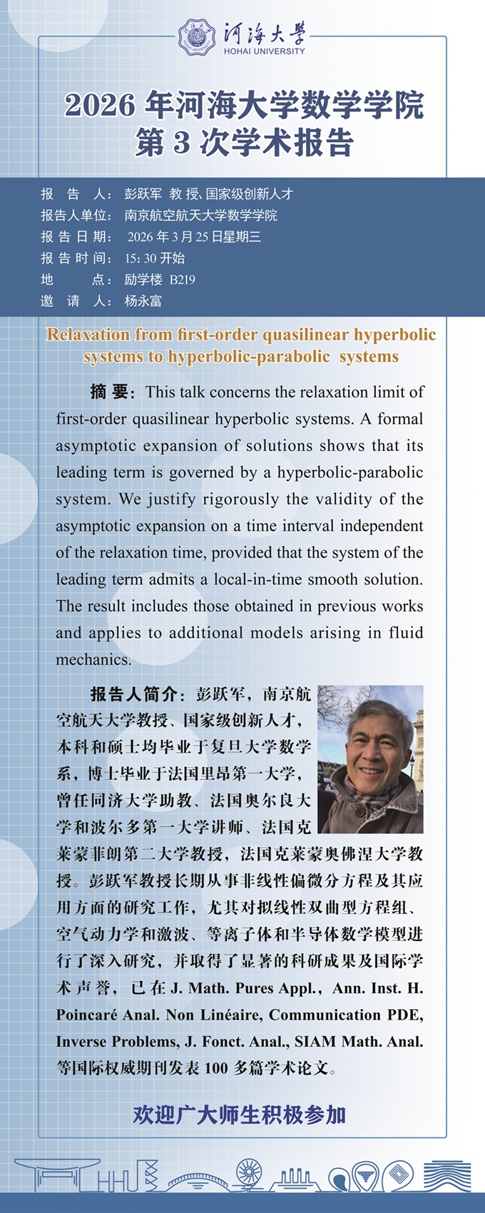 品凤楼 2026年第3次学术报告:Relaxation from first-order quasilinear hyperbolic systems to hyperbolic-parabolic systems